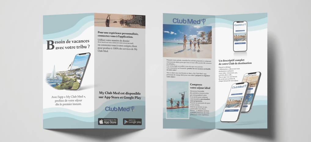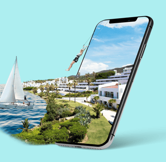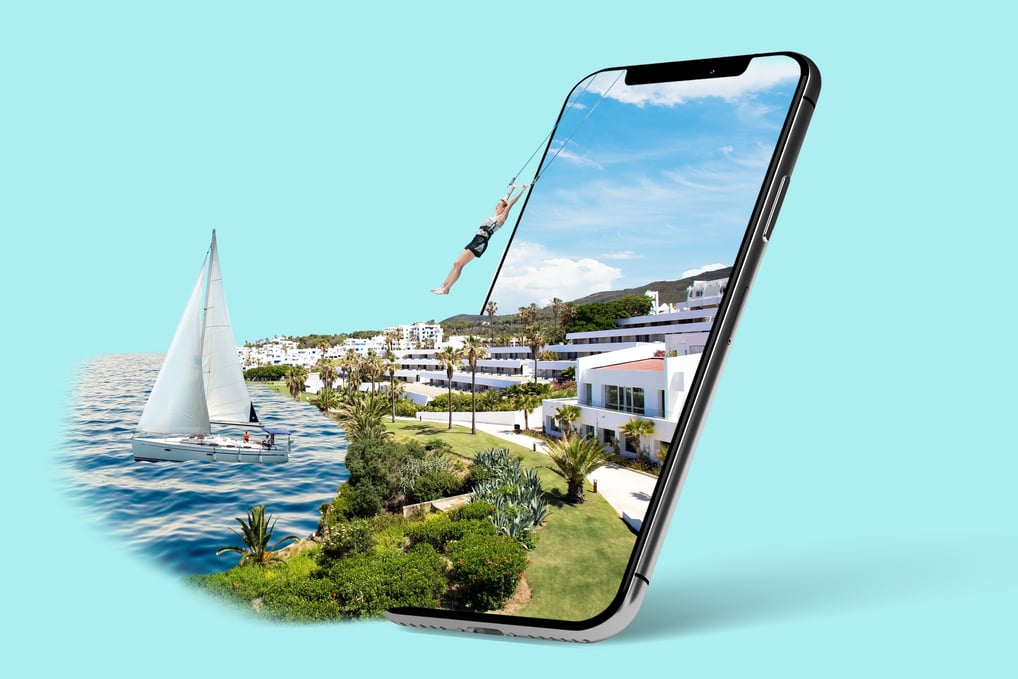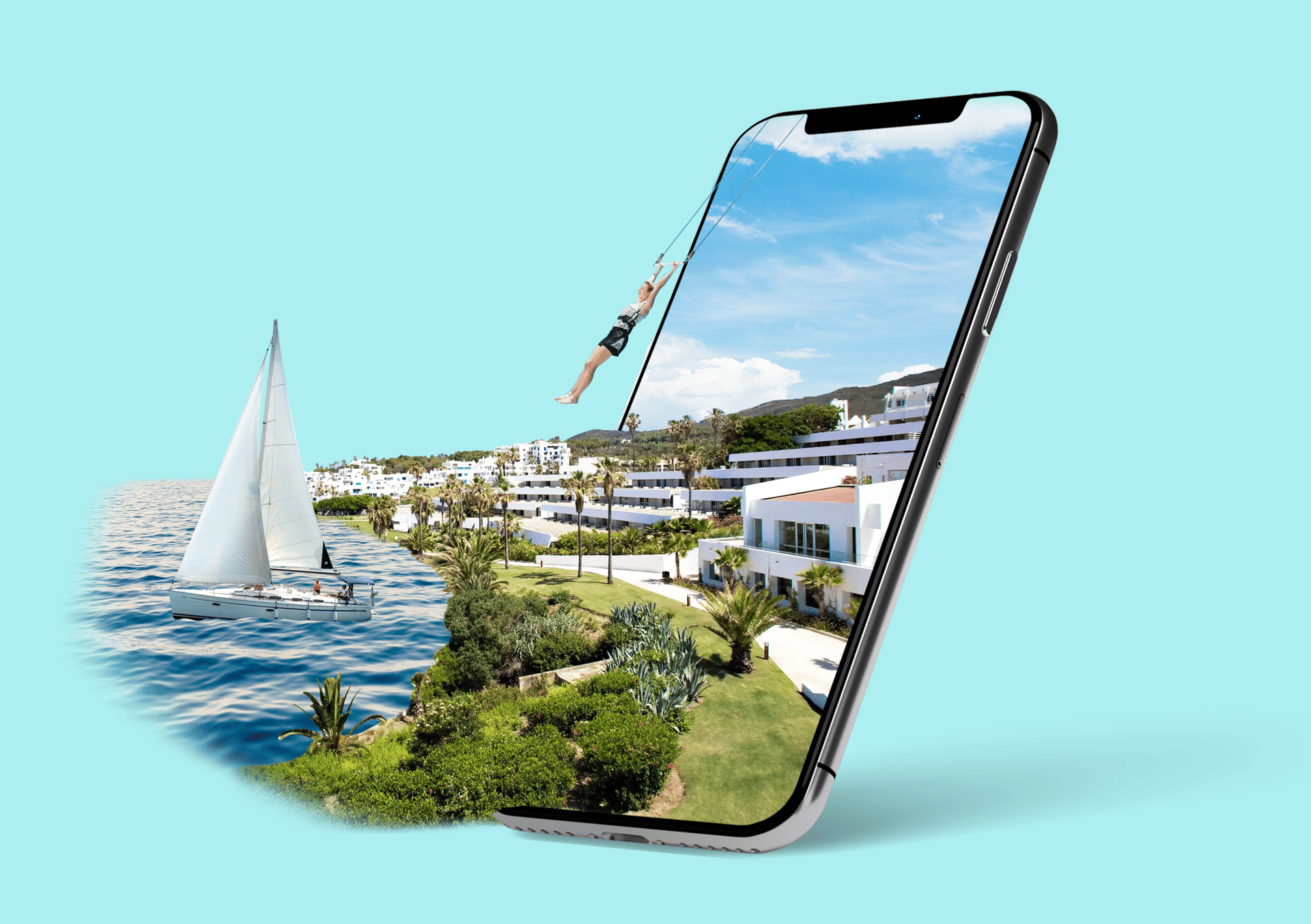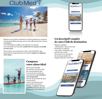 Pour ce travail, je devais créer un visuel qui sort de l'écran du téléphone et qui donne envie de se rendre dans les centres vacanciers de Club Med.