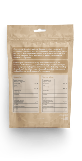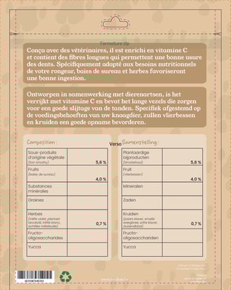 Pour ce travail, je devais imaginer une marque de nourriture pour cochons d'Inde et designer le packaging en format sachet doybag.